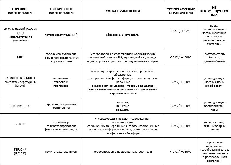 | Материал уплотнения | EPDM, PTFE, PTFE/Viton, Silikon |