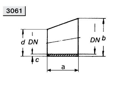 | Размер DIN (редукция) | DN 100/50, DN 100/65, DN 100/80, DN 125/100, DN 125/65, DN 125/80, DN 15/10, DN 150/100, DN 150/125, DN 150/65, DN 150/80, DN 20/10, DN 20/15, DN 200/100, DN 200/125, DN 200/150, DN 25/10, DN 25/15, DN 25/20, DN 32/15, DN 32/20, DN 32/25, DN 40/10, DN 40/15, DN 40/20, DN 40/25, DN 40/32, DN 50/20, DN 50/25, DN 50/32, DN 50/40, DN 65/25, DN 65/32, DN 65/40, DN 65/50, DN 80/25, DN 80/32, DN 80/40, DN 80/50, DN 80/65 |