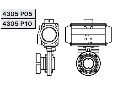 4305 Р10 Заслонка прямая с пневмоприводом Niob Fluid