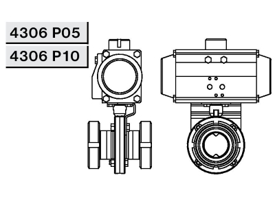 4306 Р05 Заслонка прямая с пневмоприводом Niob Fluid