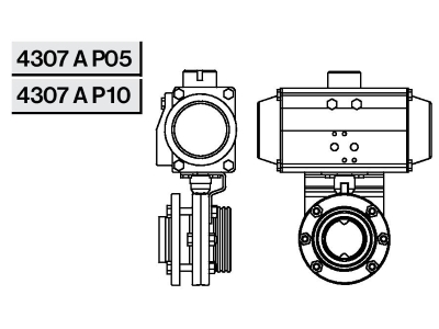 4307 A Р05 Заслонка прямая с пневмоприводом Niob Fluid