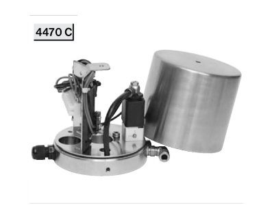 На вертикальные пневмоприводы из нержавеющей стали типа „CS“ возможно поставить контрольную головку 4470 С. В этой головке находится на одном месте датчик положения и соленоид . Эта головка снимает в каком положении находится пневмопривод и в зависимости от этого и заслонка или шаровой кран.