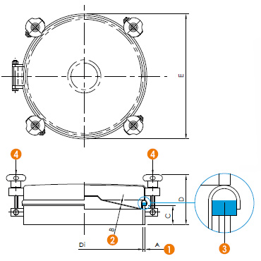 | ART. | Dn | Di | A | B | C | D | E | №4 | P. max bar |