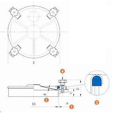 | ART. | Dn | Di | A | B | C | D | E | №4 | P. max bar |