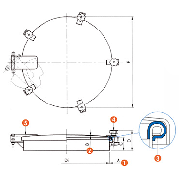 | ART. | Dn | Di | A | B | C | D | E | №4 | P. max bar |