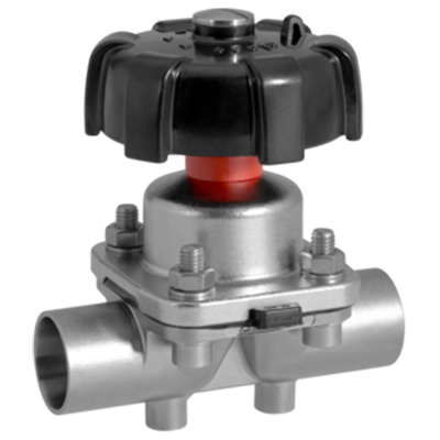 2/2-ходовой ручной мембранный клапан GEMÜ 673 с маховиком из термостойкого пластика. Серийная комплектация включает в себя ограничитель закрытия для увеличения срока службы мембраны и оптический индикатор положения.