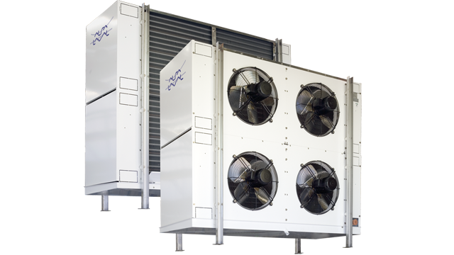 – Шаг оребрения 7 или 10 мм - 2, 4, 6 или 8 вентиляторов, продувающих через теплообменник. Диаметры Ø 508 мм или Ø 560 мм. Двигатели вентиляторов закрытого исполнения, брызгозащищённые, класс защиты IP55. Двигатели оснащены тепловым защитным устройством в обмотках, подключённым к отдельным клеммам в коробке.