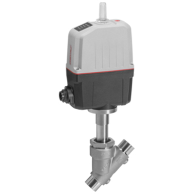 2/2-ходовой клапан с наклонным шпинделем GEMÜ 543 eSyStep с электрическим управлением. Привод eSyStep предлагается в исполнении для двухпозиционного регулирования (перекрытие/открытие подачи среды) или в исполнении со встроенным регулятором положения. Уплотнение шпинделя клапана осуществляется с помощью саморегулирующегося сальникового уплотнения, благодаря чему обеспечивается не требующее обслуживания, надежное уплотнение шпинделя клапана на протяжении длительного срока эксплуатации. Съемное кольцо перед сальниковым уплотнением дополнительно защищает его от загрязнения и повреждения. Серийная комплектация включает в себя оптический и электронный индикаторы положения. Привод с функцией самоторможения сохраняет свое положение в отрегулированном состоянии и при отказе электропитания.