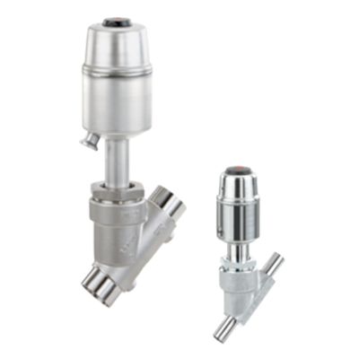 2/2-ходовой пневмоклапан с наклонным шпинделем GEMÜ 550с поршневым приводом из нержавеющей стали, практически не требующим технического обслуживания. Уплотнение шпинделя клапана осуществляется с помощью саморегулирующегося сальникового уплотнения, благодаря чему обеспечивается не требующее обслуживания, надежное уплотнение шпинделя клапана на протяжении длительного срока эксплуатации. Съемное кольцо перед сальниковым уплотнением дополнительно защищает его от загрязнения и повреждения.