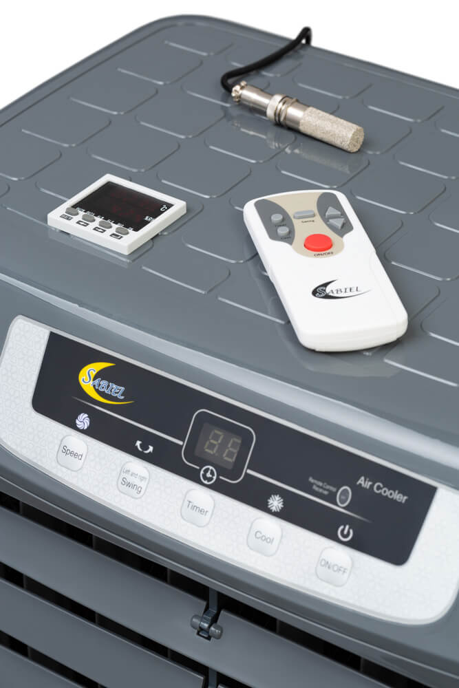 Испарительный охладитель-увлажнитель воздуха SABIEL МВ35VH сочетает функции охладителя, увлажнителя, аквафильтра, вентилятора и ионизатора воздуха.