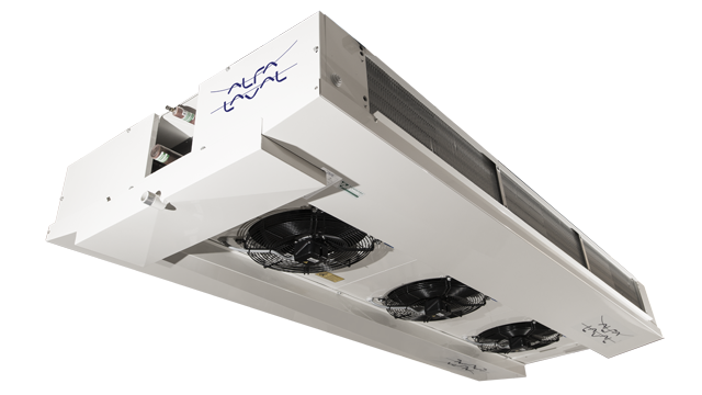- От 1 до 5 вентиляторов, оснащённых двигателями AC или EC, доступны в двух скоростях вращения (уровнях шума). Диаметры вентиляторов 300 или 400 мм, продув через теплообменник. Двигатели вентиляторов 460/60/3 доступны в качестве опции.
