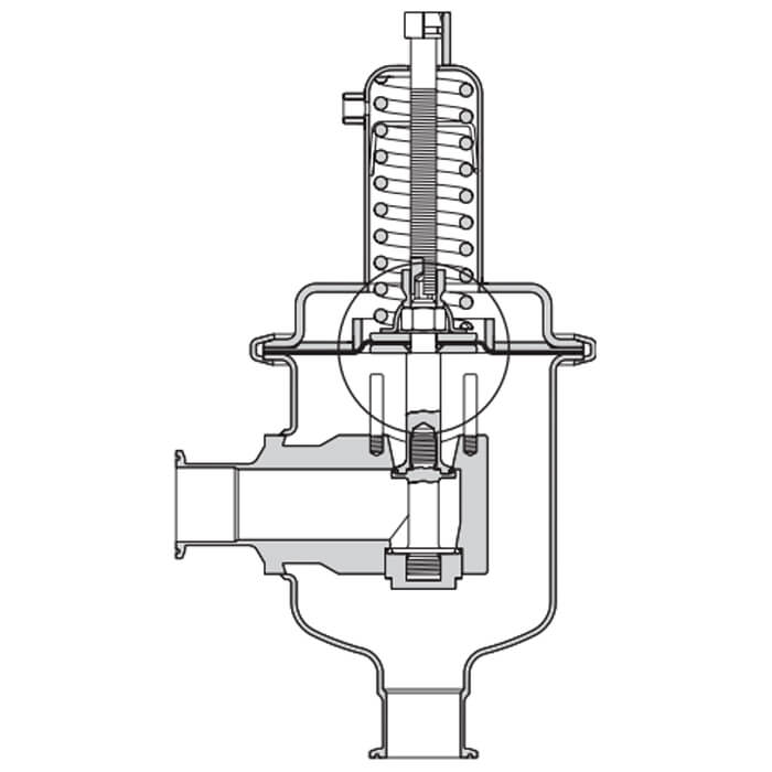 Гигиенический редукционный клапан давления SRV66HC, полностью изготовленный из нержавеющей стали, представляет собой двухседельный, подпружиненный пропорциональный регулирующий клапан высокой производительности, преимуществом которого также является наличие быстроразъемного зажимного кольца корпуса. Он предназначен для санитарного применения в пищевой, пивоваренной и фармацевтической промышленности. Угловая конструкция обеспечивает полный слив без застойных карманов и подходит для использования в системах CIP и SIP. Клапану не требуется внешняя пилотная линия.