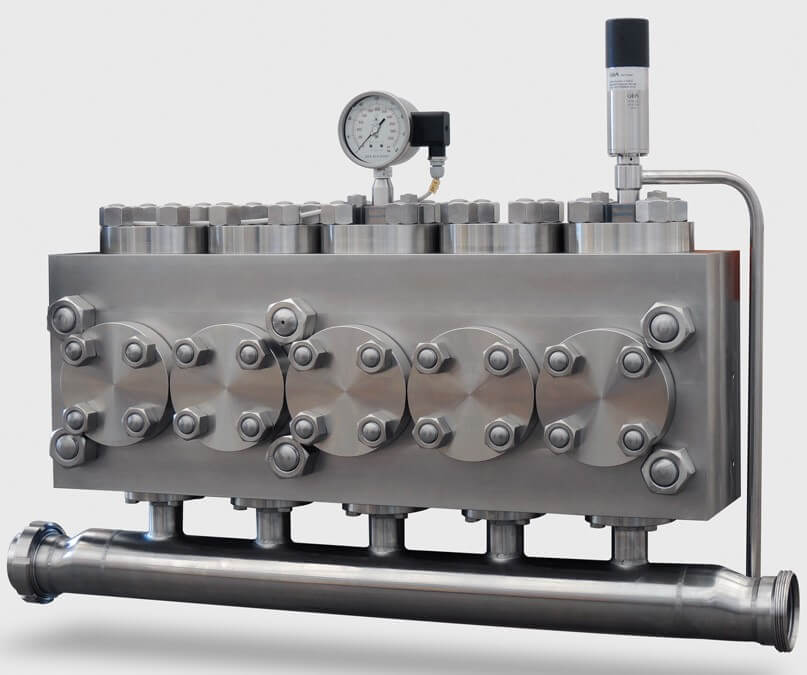 Стандартный компрессионный блок – это моноблочная головка, которая подает продукт к гомогенизирующему клапану под высоким давлением.