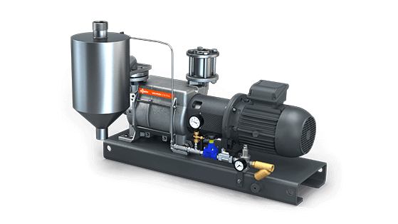 Установка с несущей рамой, сепаратор для рабочей жидкости, система управления, включая впускной обратный клапан, комплект подачи свежей жидкости, индикатор уровня (только для ATEX), датчик температуры (только для ATEX), индикаторы давления и защиту от кавитации